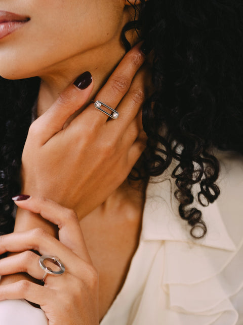Chaque bague se compose d’une base et de modules interchangeables. Vous pouvez ainsi varier les styles en gardant le même bijou, et compléter votre collection au fil du temps.