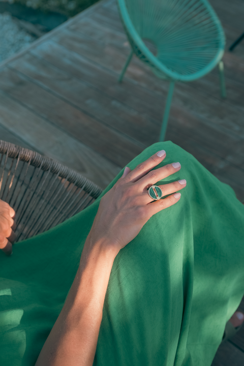 Chaque bague se compose d’une base et de modules interchangeables. Vous pouvez ainsi varier les styles en gardant le même bijou, et compléter votre collection au fil du temps.